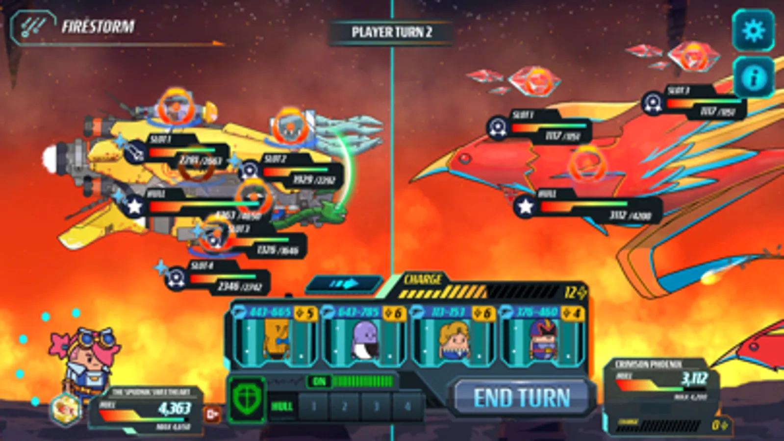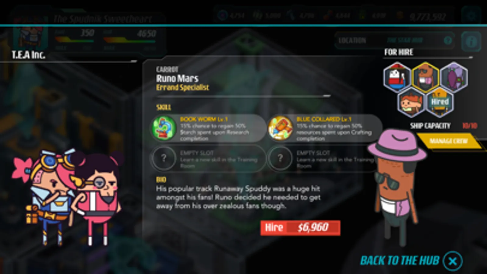 ● Hire engineers from an array of strangely familiar edibles to man your ship and weapons