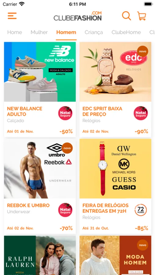 Faça download da aplicação Clubefashion e descubra um novo mundo de compras espectaculares ao melhor preço de mercado!
