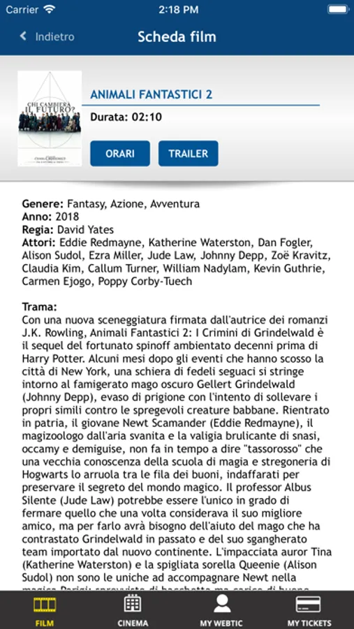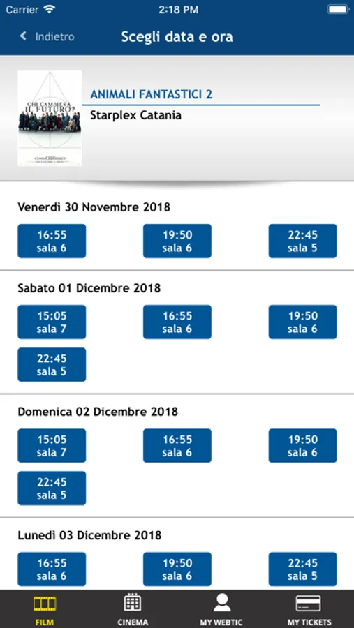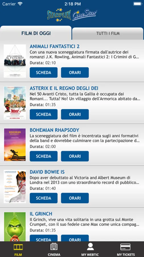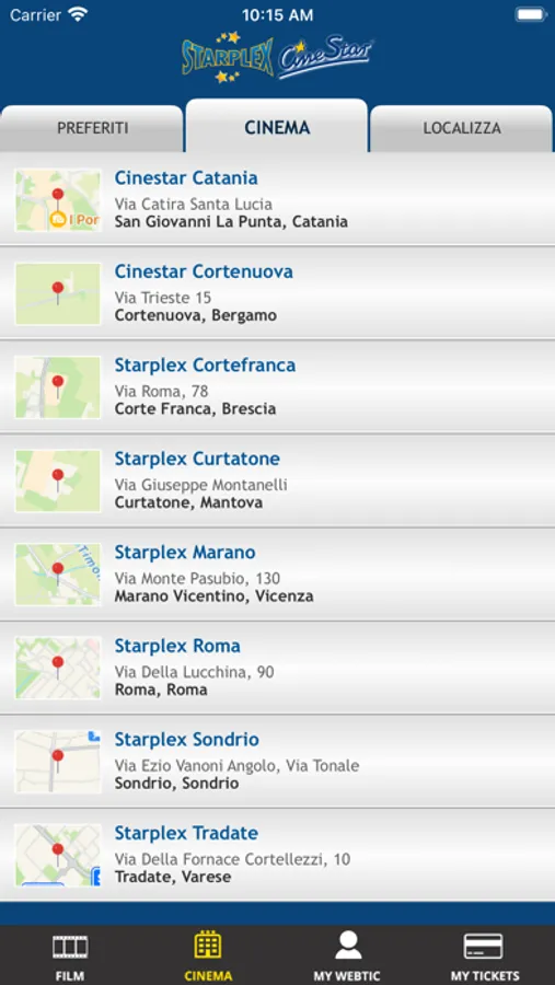 Applicazione di Crea Informatica, per l'acquisto e la prenotazione dei posti nei prestigiosi cinema Starplex e Cinestar di Marano Vicentino, Curtatone, Catania, Roma, Sondrio, Cortefranca e Tradate