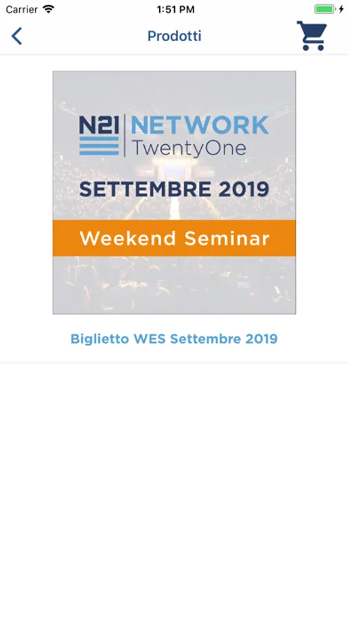 Attraverso l'applicazione N21 Mobile Italia potete acquistare e visualizzare i biglietti per gli incontri di formazione di Network TwentyOne. Utilizzate l'applicazione N21 Mobile Italia per mostrare il vostro biglietto all'ingresso degli eventi per poter accedere.
