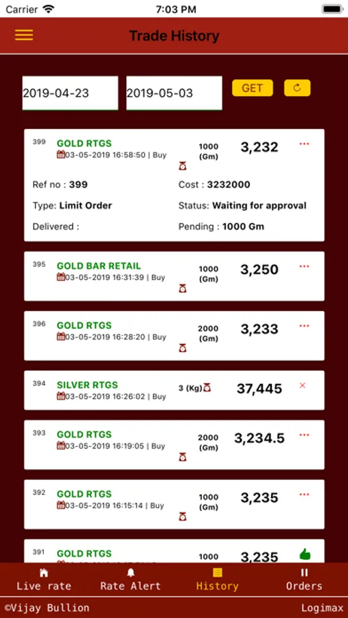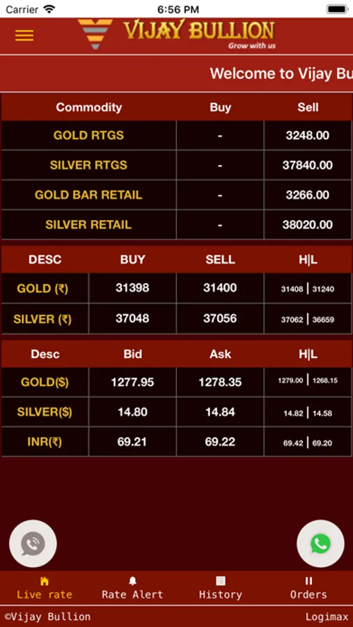 Download Vijay Bullion's app to stay in touch with the precious metal markets on the go! This application provides an excellent market overview with a clean interface, rocket fast response times, loads in seconds.