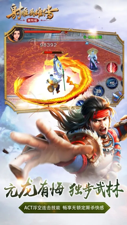 基于MMO多人在线交互特性,《射雕英雄传-国际版》将彰显青春热血一词的ACT连击融入战斗系统,打造出独有的全新MMORPG战斗风格。在攻击、前闪避、后闪避、擒拿、轻功等多种战斗技巧组合,玩家将拥有更多的操作空间。基于ACT“跑打”特性模式,玩家将敌人打至浮空后也还可以对敌人进行追击,配合多种招式组合下打出酷炫的连击。