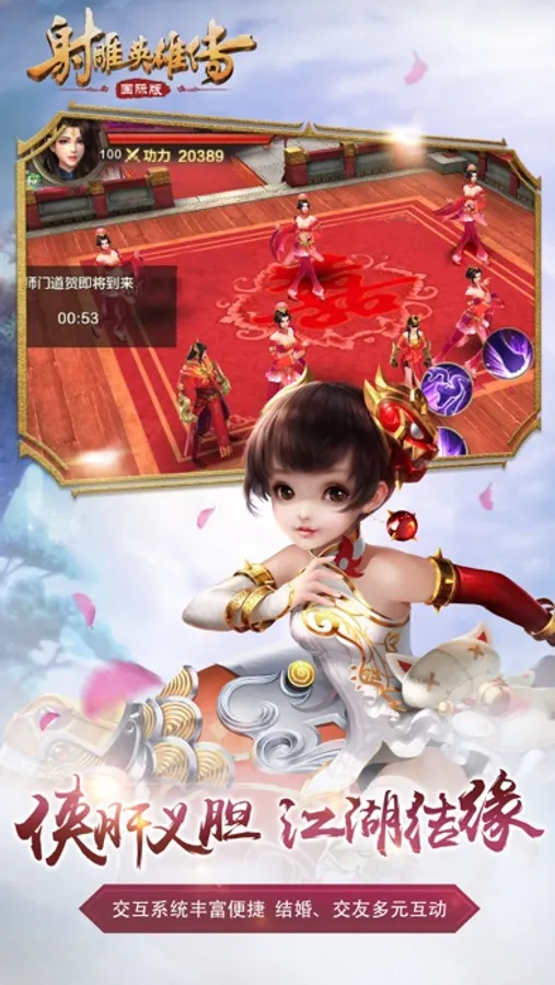 《射雕英雄传-国际版》手游重现原著经典剧情:风雪惊变牛家村、侠肝义胆守卫襄阳、五绝齐聚征战华山之巅等江湖盛况再现,代入感十足;华丽的功法及特效激爽连连,挥毫间再现唯美射雕江湖世界,为你再造一个充满侠义、情仇、纷争的武侠新世界!