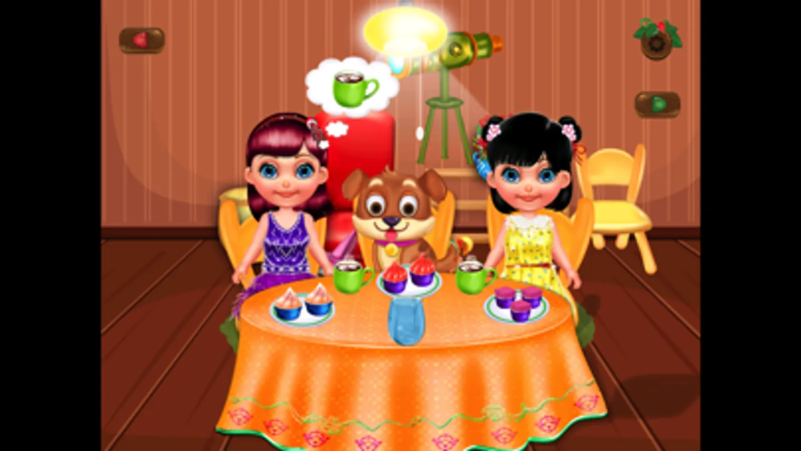 بعدها ننتقل الى المرحلة المحببة لدى الأطفال وهي تناول الكعك والعصير فيقوم الطفل بتقديم الطعام للشخصيات الجميله بالتطبيق والتمتع بهذه اللحظة.