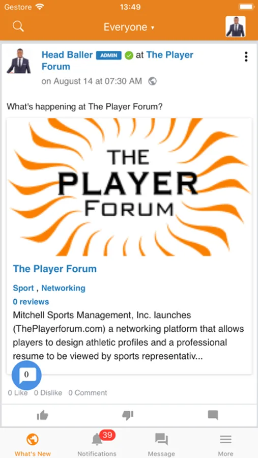 The Player Forum.com (Players Membership) Players can design their athletic bio and professional work resume to include photos, videos, athletic statistical data, academic achievements and ultimately their career development aspirations. They can apply to and interview for jobs posted by professionals.