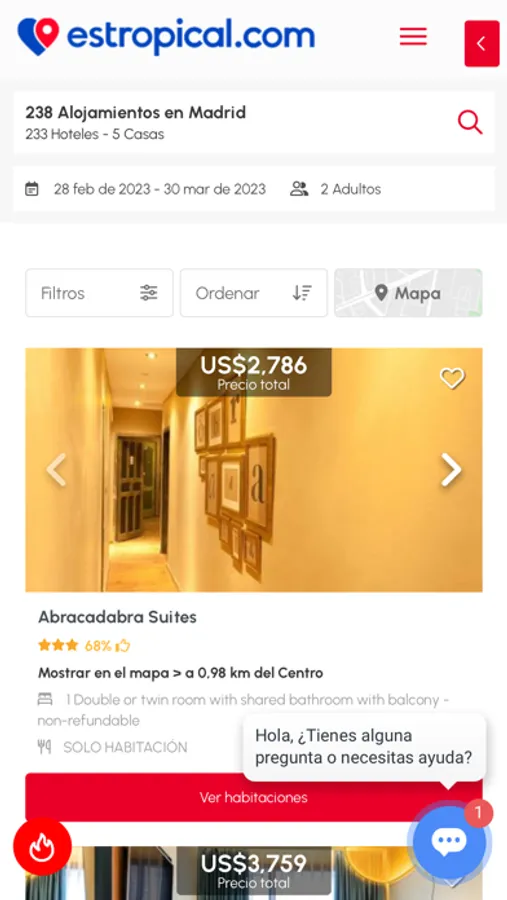 estropical.com does the work for you, searching among more than 450 airlines, 400,000 hotels and 200,000 activities around the world. If you're looking for a flight, you can prioritize your search by price, layovers, airline, and more. If you are looking for accommodation, you can customize your choice through our filters for price, hotel popularity, free cancellation, number of stars and other points of interest. If you rent a car you can choose the category, collection points, providers and characteristics of the vehicle.