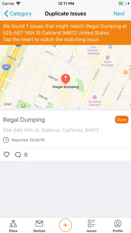 OAK 311 makes connecting with the City of Oakland, California easier than ever. You can quickly report non-emergency issues (such as potholes, graffiti, or damaged sidewalks), and even attach a photo of the issue. You can also comment on and follow issues that have been reported by others in Oakland. The exact location of the issue can either be pulled automatically using GPS or adjusted manually. Once submitted, the report will be directly routed to the appropriate department within the City of Oakland and you will be notified when action is taken. Community members can follow and comment on your submission. In addition, the app can be used to connect to the City of Oakland on social media, find out the latest news, check out upcoming events, and more! OAK 311 makes it easier than ever to reach out to the City!