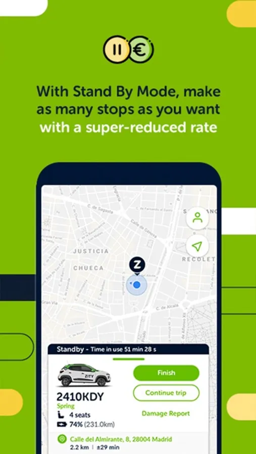And, if you want to do stop and want to keep your ZITY, turn on Stand By mode. It will be like pause your booking. And that way, you will go shopping, go to the movies, or make arrangements quietly with a special very reduced fare. Now, car fits to you and to your need, this is Flexible Living, Flexible Driving, this is ZITY!