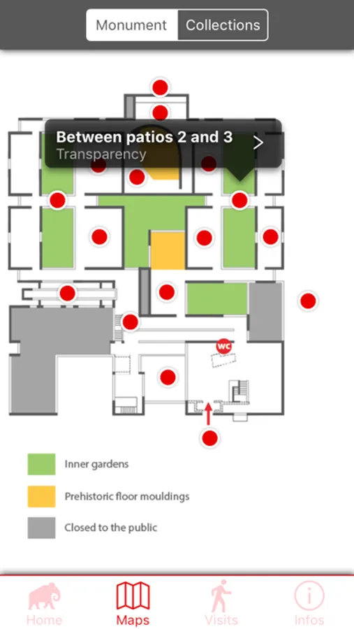 Consequently, this application, which comprises 400 pictures, is composed of two different visits: one dedicated to the archaeological collections, and the other to the architecture of the building. The first one is a commented one hour tour of the museum’s rooms in a chronological order. The second one proposes a 30 minute walk inside and outside the museum.