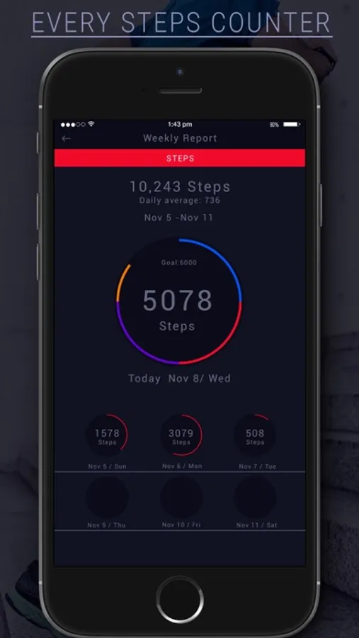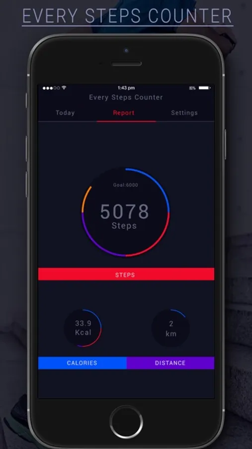 This pedometer uses the built-in sensor to count your steps. No GPS tracking, so it can greatly save battery. It also tracks your burned calories, walking distance and time, etc. All this information will be clearly displayed in graphs.