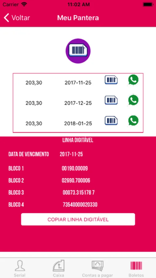 Tenha acesso ao seu serial com mais facilidade, veja seus movimentos de caixa e veja os últimos boletos para realizar o pagamento.