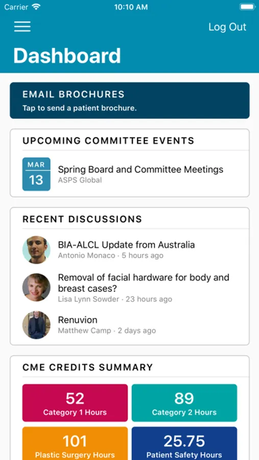 - See upcoming committee events, CME credit summary and the latest news in a convenient dashboard