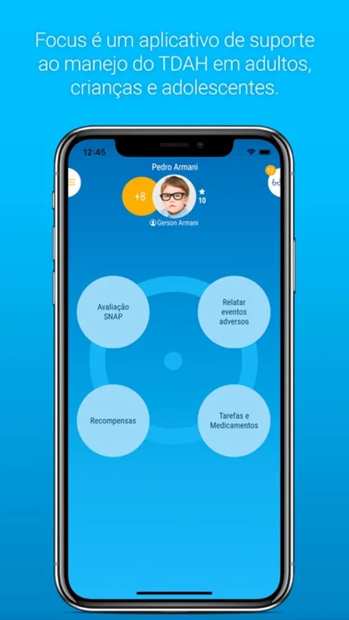 Esta avaliação procura medir o nível de desatenção e hiperatividade/impulsividade através de um conjunto de perguntas sobre comportamentos recentes do paciente. Ao final, o aplicativo exibirá o resultado que poderá ser comparado com resultados anteriores. As avaliações são semanais e em dias e horários aleatórios.