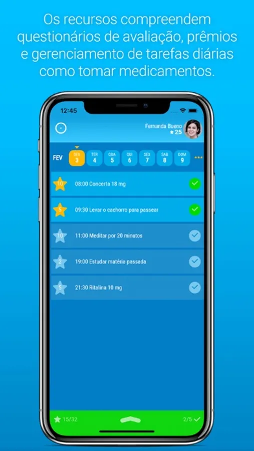 >Crie uma agenda para o paciente com tarefas do dia a dia e mantenha-o empenhado em cumpri-las. Você pode programar até 6 tarefas para se repetirem diariamente, a cada semana ou a cada duas semanas.