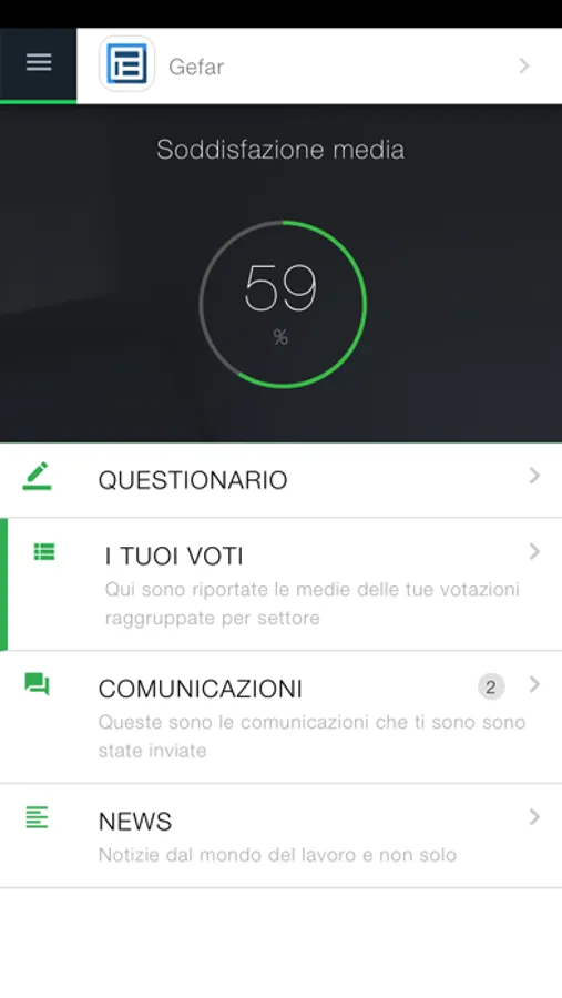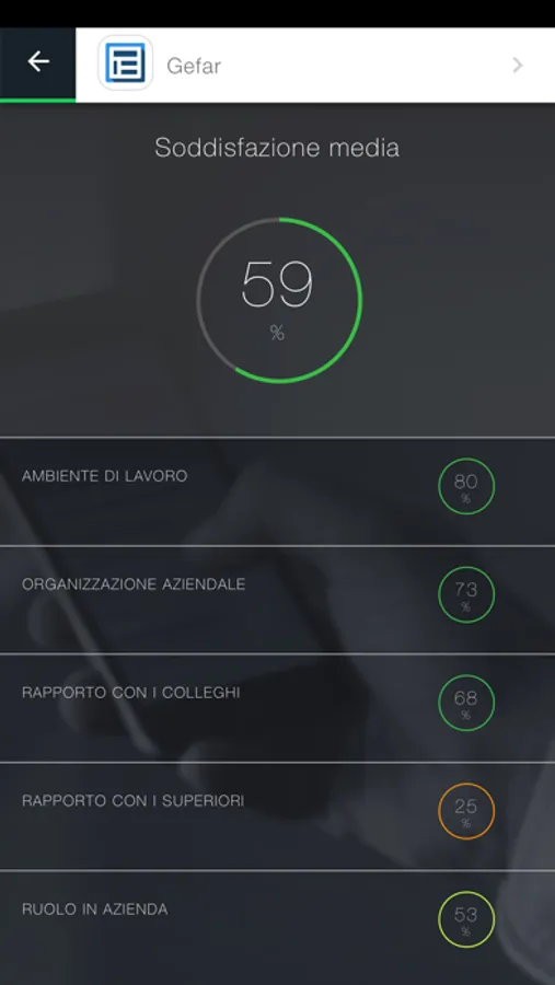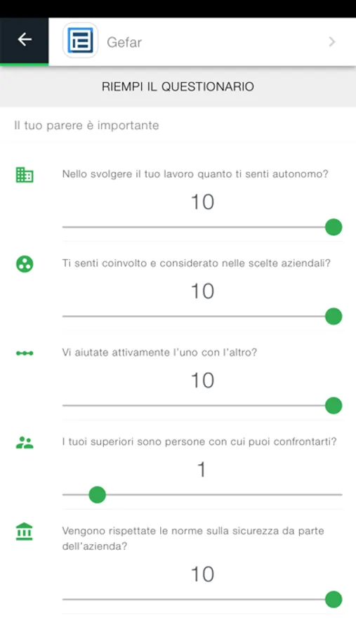 GefarApp S, l’unico strumento che consente di misurare in tempo reale il clima aziendale attraverso un’App. Con GefarApp S, potrai esprimere, attraverso il tuo smartphone, in modo semplice e veloce, il grado di soddisfazione lavorativo.