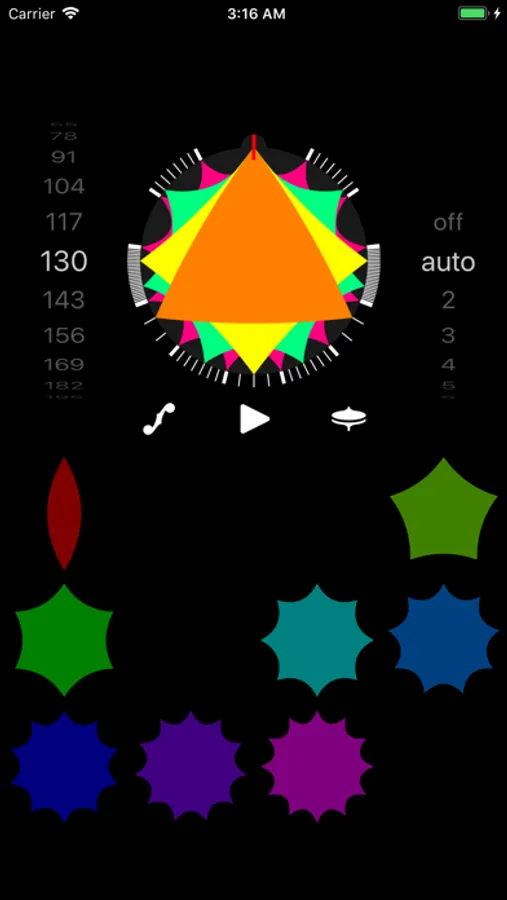 Polygonome is metronome that uses polygons to present polyrhythms in a understandable way. Automatic-per beat subdivision calculation makes it easy to learn complicated patterns such as 7 / 4 / 3 or 9 / 5 / 4. Drag of tap polygons to activate them and press play! Great tool for people studying Carnatic Music tradition.