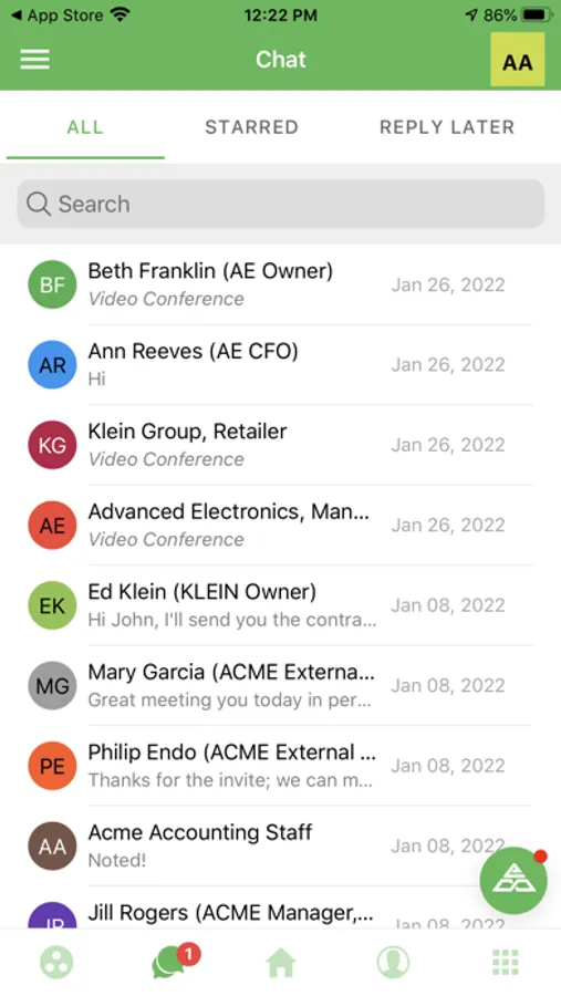- Communicate within and beyond your firm and to reach out and collaborate with your coworkers, clients or customers, professionals, and other contacts via a secure text/voice messaging system, file transfer, video conferencing, screen sharing, and more.