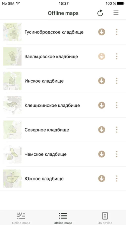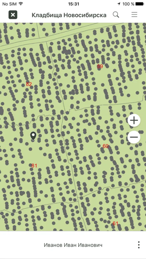 The app is provided for work with electronic online and offline maps of the following Novosibirsk cemeteries: Chemskoye, Gusinobrodskoye, Inskoye, Yuzhnoye, Kleschikhinskoye, Zayeltsovskoye, Severnoye.