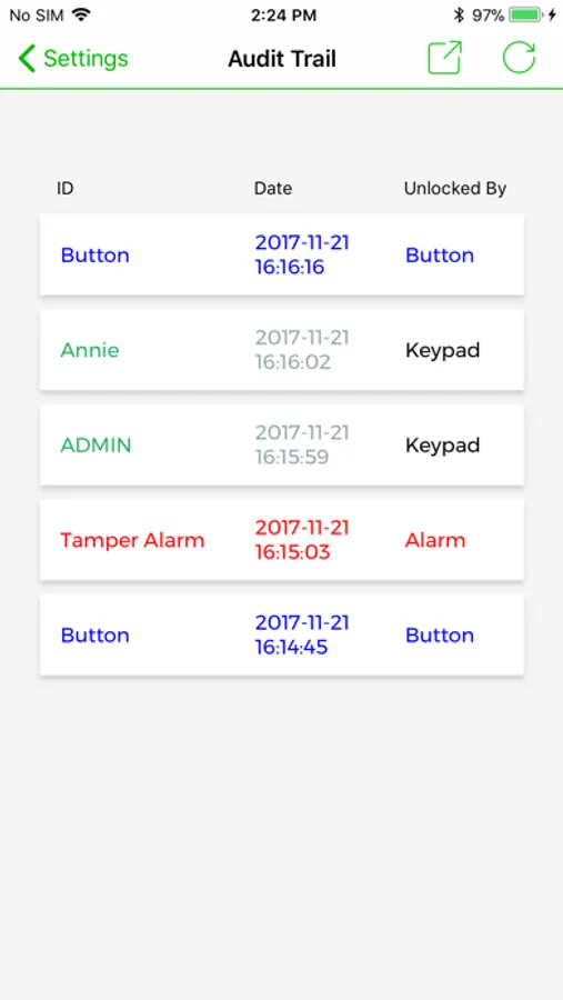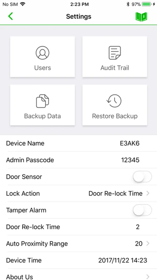 1. Remote Open, when click the“E" icon on app's Main Page, opens the door.
