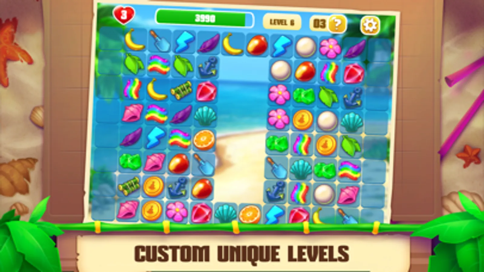 - Fresh and sunny tropical island game: yummy fruits, sparkling jewels...