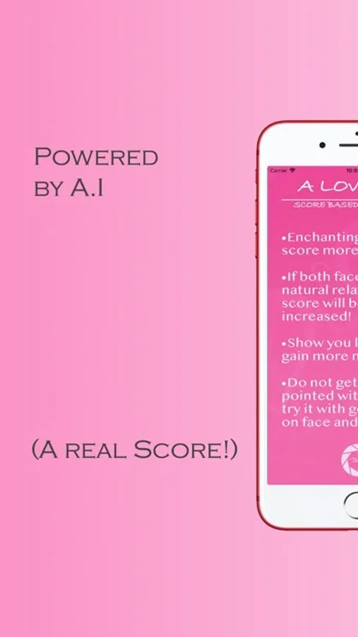 It has ability to recognized smiles, different faces angles different face positions, so you can change the love score with good smile and lovely face angle with true love to your partner.