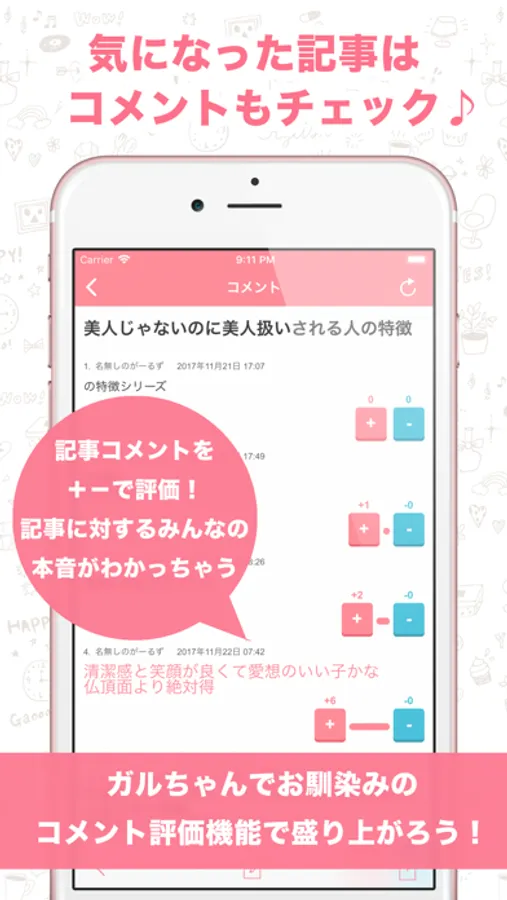 ガルちゃんのようにそのコメントに対しての投票機能も実装!