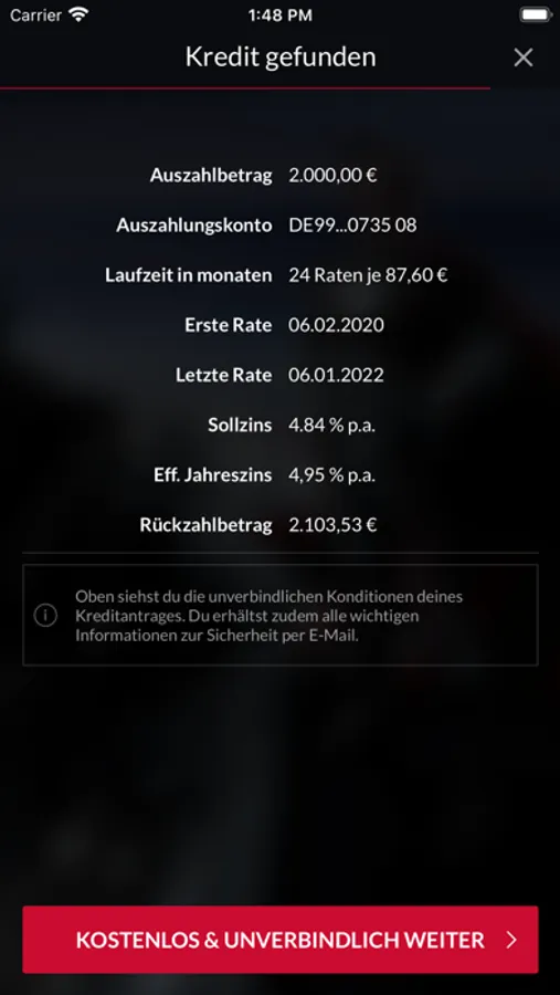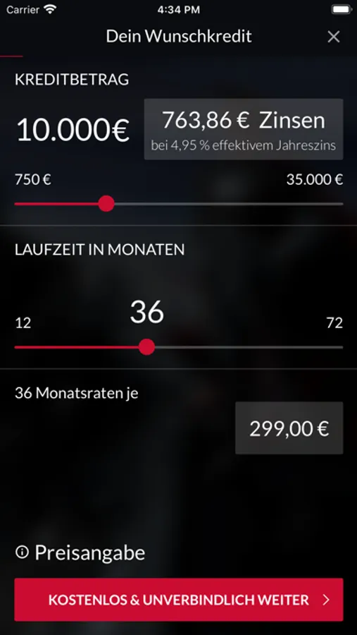Vor dem Abschluss werden dir die Kreditkonditionen inklusiver aller Kosten ganz transparent angezeigt, es gibt keine versteckten Gebühren!