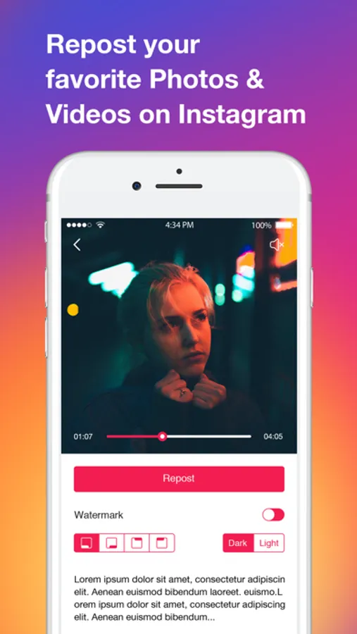 Repost for Insta Photos app lets you repost your favorite photos and videos anytime.