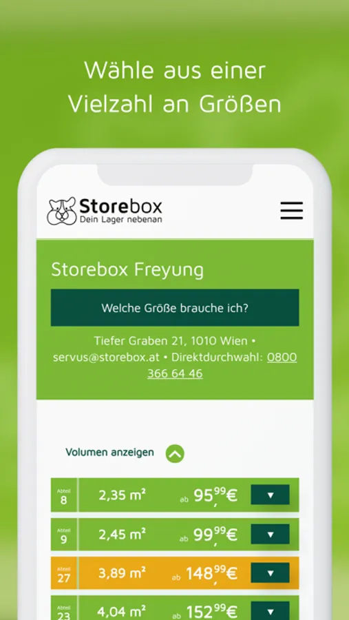 Storebox ist die modernste Selfstorage-Lösung in Europa. Storebox bietet individuelle 1-15m² große Lagerabteile in zentralen Lagen zu attraktiven Konditionen. Der gesamte Prozess von der Auswahl bis zur Buchung des Abteils wird online abgewickelt. Mit der App ist die Buchung der Storebox am Handy noch einfacher und intuitiver!