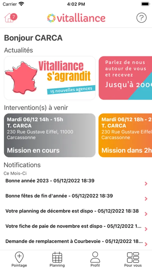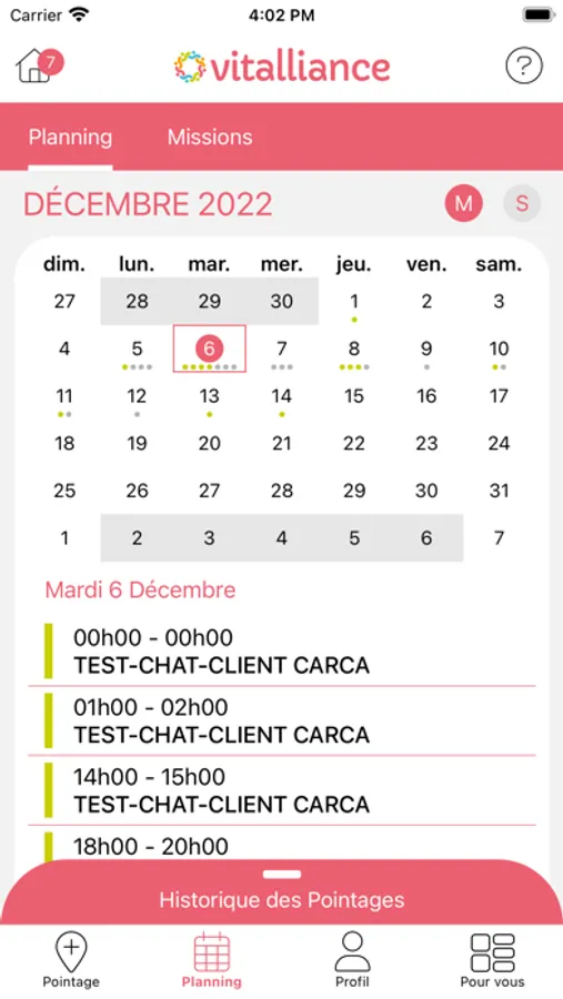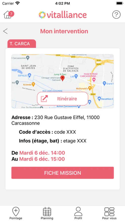 - accéder à votre planning pour les interventions passées et à venir et visualiser le détail de chaque mission