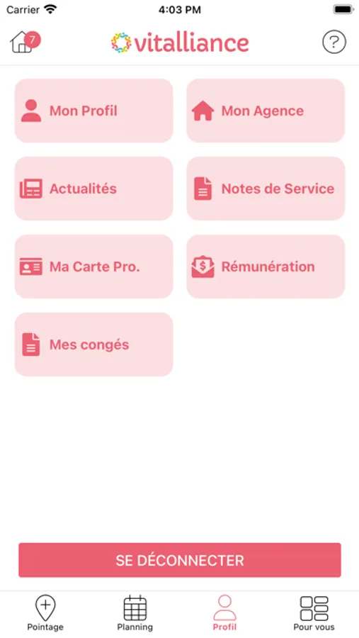 - accéder à vos documents professionnels (bulletin de paie, carte professionnelle, etc)