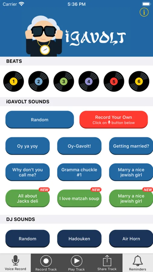 - A "Track Record" feature -- record and share your creations. Click ‘record track’ and we’ll record up to 30 seconds of whatever you do on iGavolt for you to share with your family and friends.