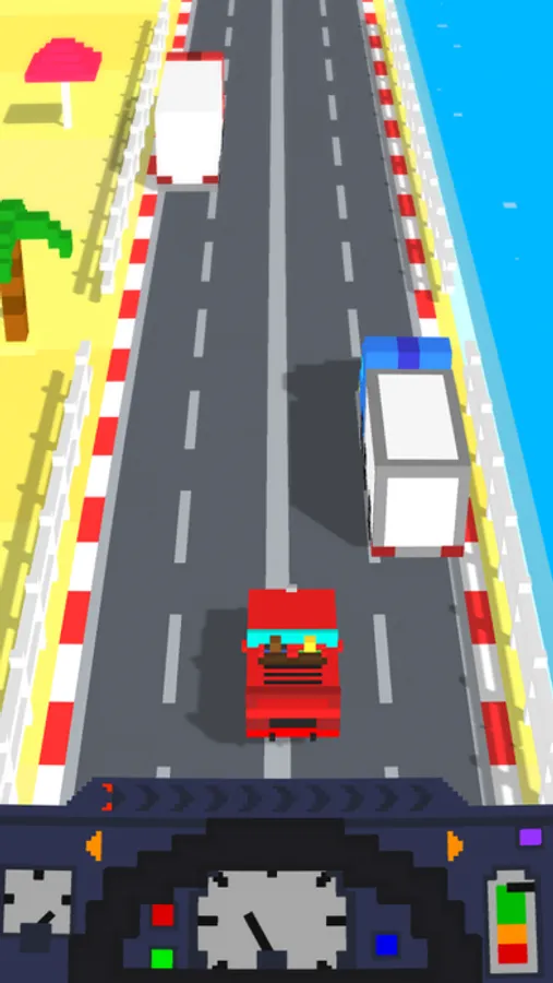 Simple and addictive one touch gameplay: touch the wheel to drive and avoid obstacles.