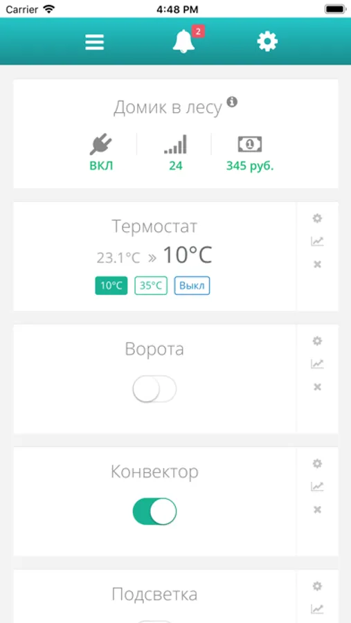 Сейчас поддерживается работа с контроллерами: UniBox, WirenBoard, Эритея Аура, Stemax, AJAX и другие. Есть возможность подключения оборудования по протоколу MQTT.