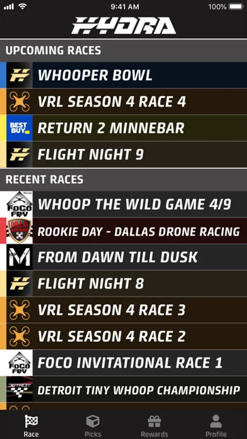Hydra FPV gives you full access to your local live drone racing events.
