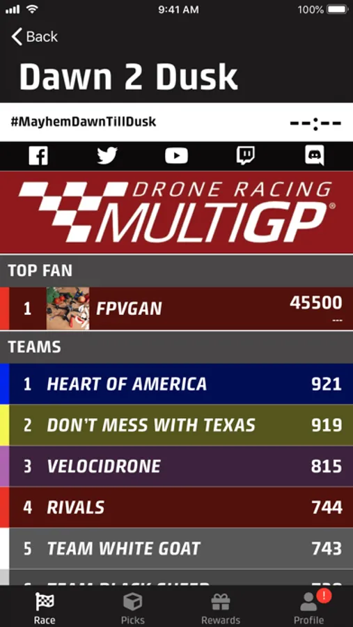 - Live stream Drone Races directly in the app while chatting with other Fans