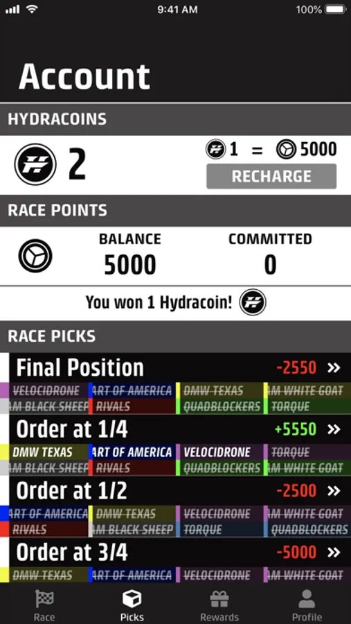 * Picking is free. Points and HydraCoins earned from picks have no cash value.