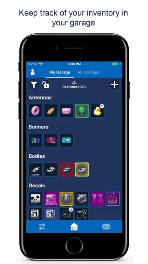 • Access to your very own garage where you can keep track of your in-game inventory and quickly create trade listings.