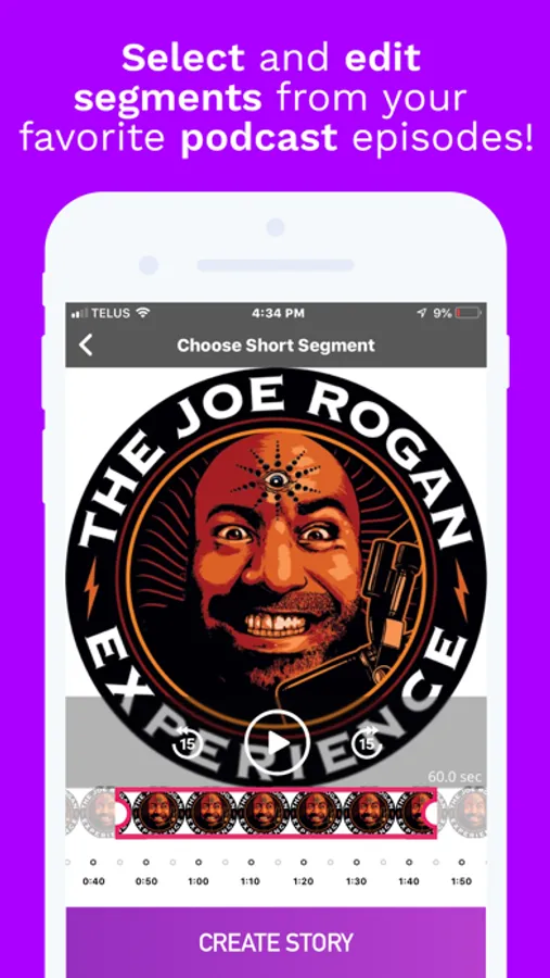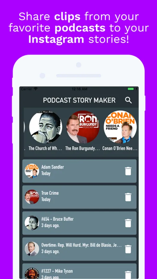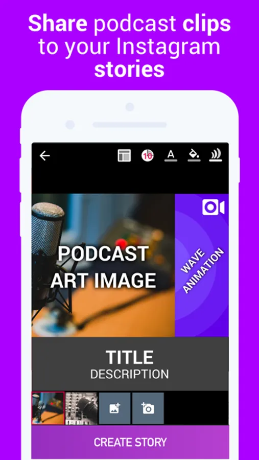 Podcast Story Maker for Instagram creates short video clips from your favorite podcasts that can then be shared to Instagram, Snapchat, WhatsApp or Facebook stories.
