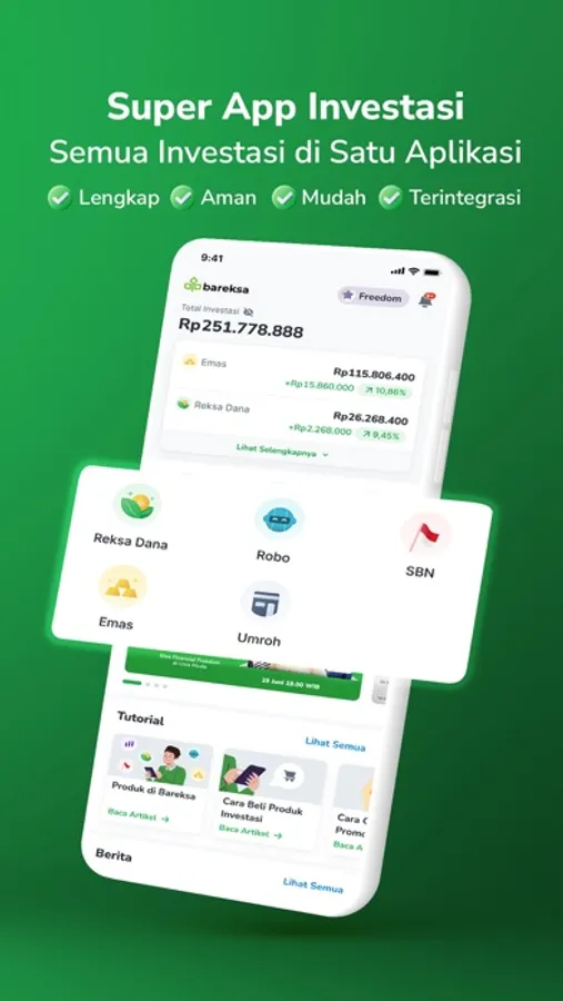 Investasi reksa dana, surat berharga negara (SBN), dan emas jadi lebih mudah, nyaman, dan terintegrasi, lengkap dalam satu aplikasi.