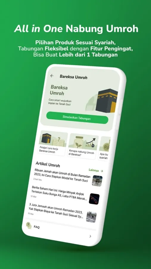 Rencanakan perjalanan umroh ke Tanah Suci hingga 5 jamaah per tabungan dengan investasi reksa dana syariah. All in one nabung umroh mulai dari perencanaan, perjalanan umroh, hingga pulang ke Tanah Air dengan mitra tepercaya.