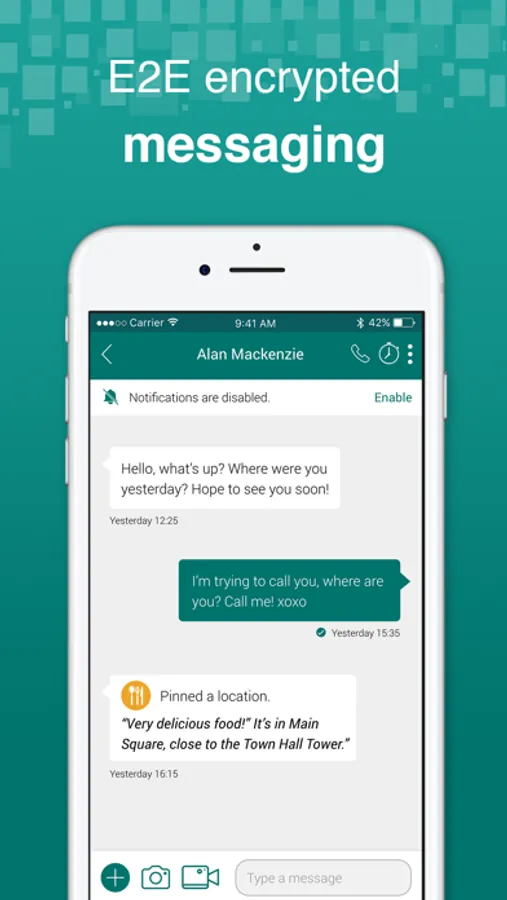Crypty provides full end-to-end encryption. It is the only secure communication app whose on-device data is safe even from spy software.
