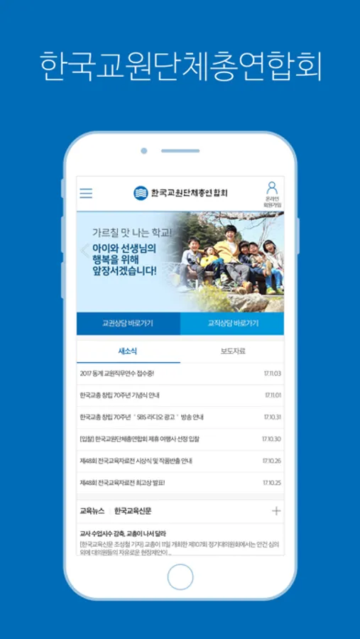 - 한국교총에서 제공하는 교육뉴스와 정책추진 등 최신 교육관련 정보를 빠르게 확인할 수 있는 스마트폰 앱이 새롭게 출시 되었습니다.