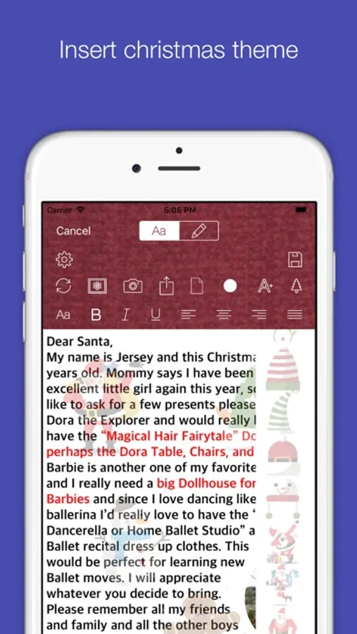 Santa's Letter is the app that will allow you and your kids to create beautiful letters for Santa Claus, having fun spending time together.