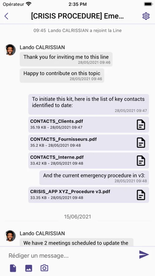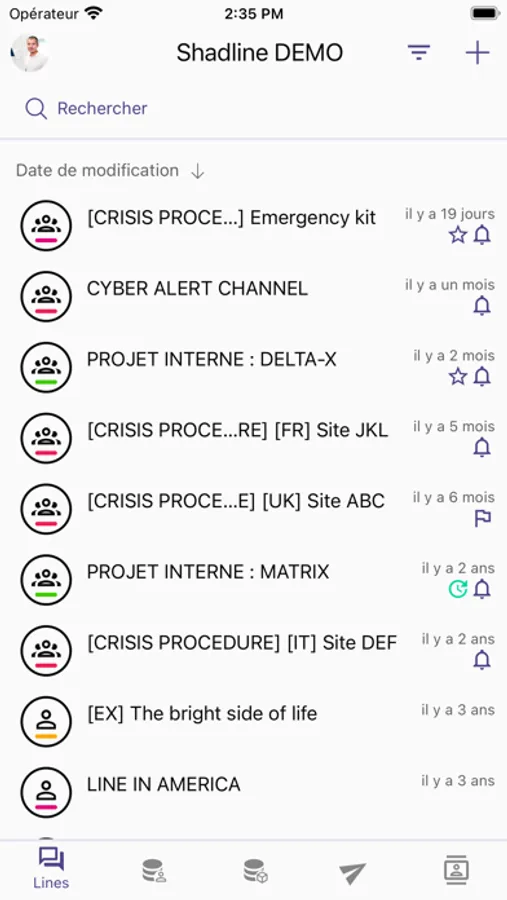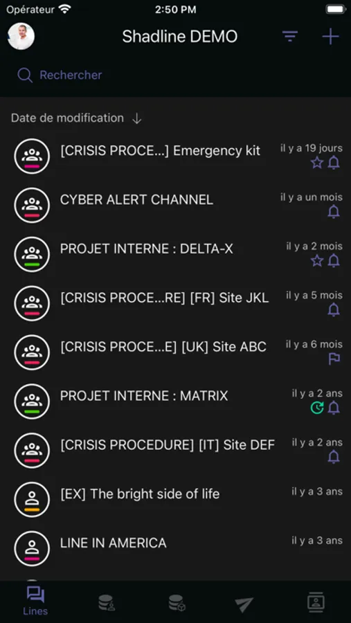 1) Messagerie (Lines) => canaux d’échanges sécurisés de messages et fichiers