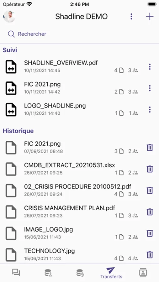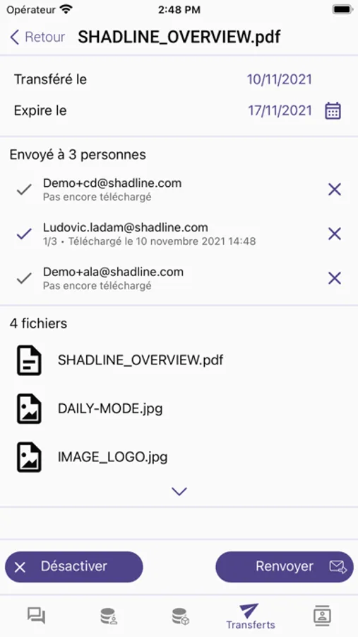 3) Transfert => Envoi rapide et sécurisé de fichiers entre utilisateurs internes ou externes