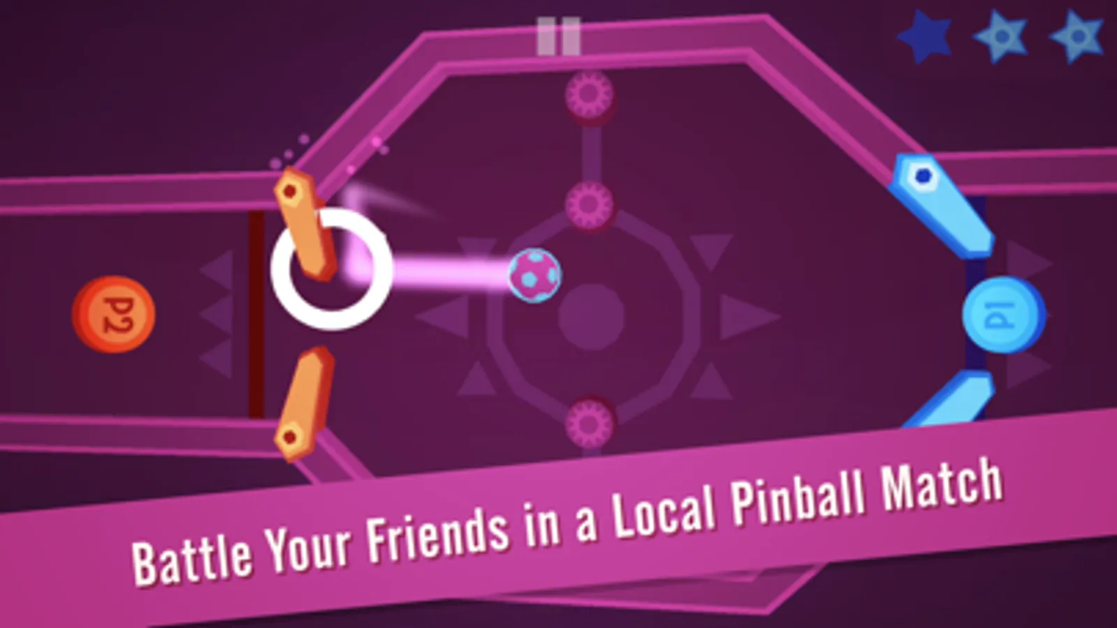 Battle Pinball is a 2-player versus game, played on a single device. Play with your friends, against AI or set two AIs against each other. Simple fast-paced fun.
