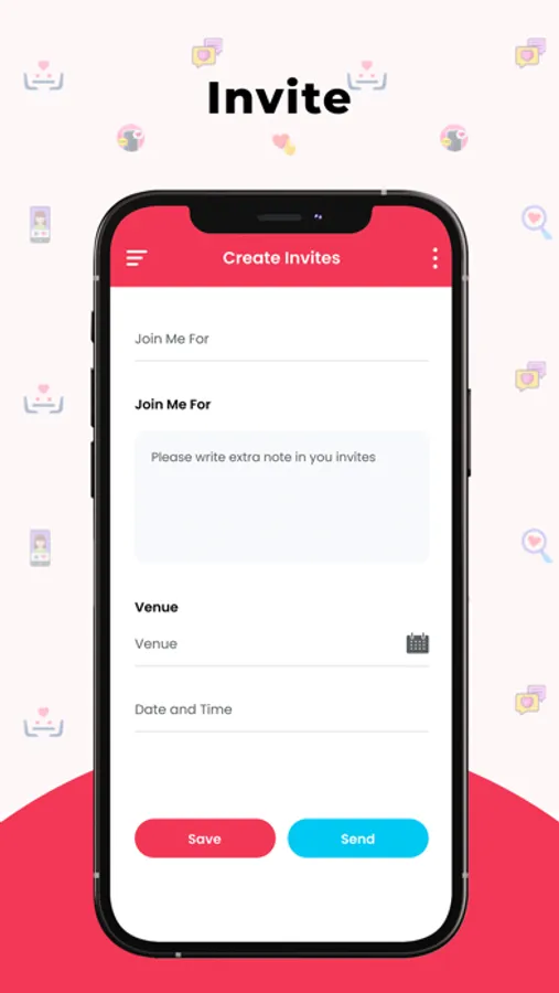 ● Customize the invites by adding a title, personalized description, date and venue to them