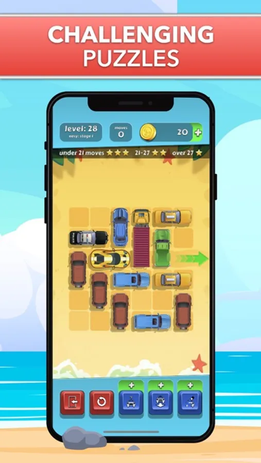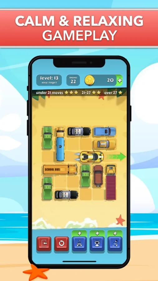 Parking Escape, a new take on the classic wood block sliding puzzle game, is relaxing, challenging, and fun. Don’t panic to escape the parking jam, just flow free through traffic at this beachside carpark. Unblock the cars in these calm logic puzzles for total zen.
