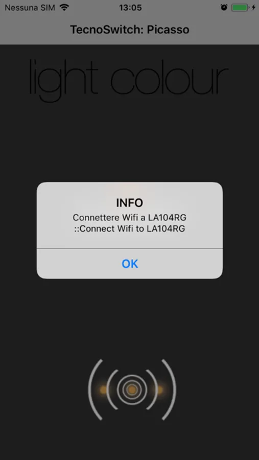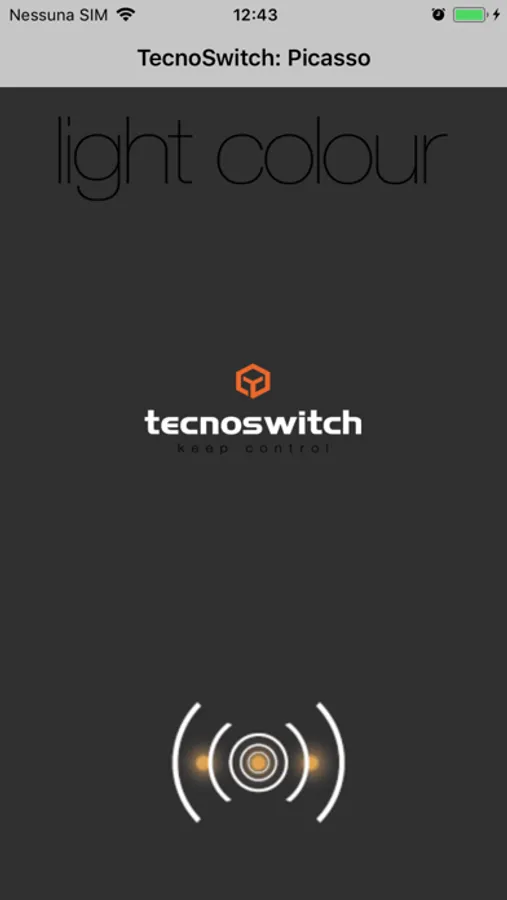 Premendo l'animazione della schermata iniziale si stabilisce il collegamento con la lampada Picasso (WiFi).